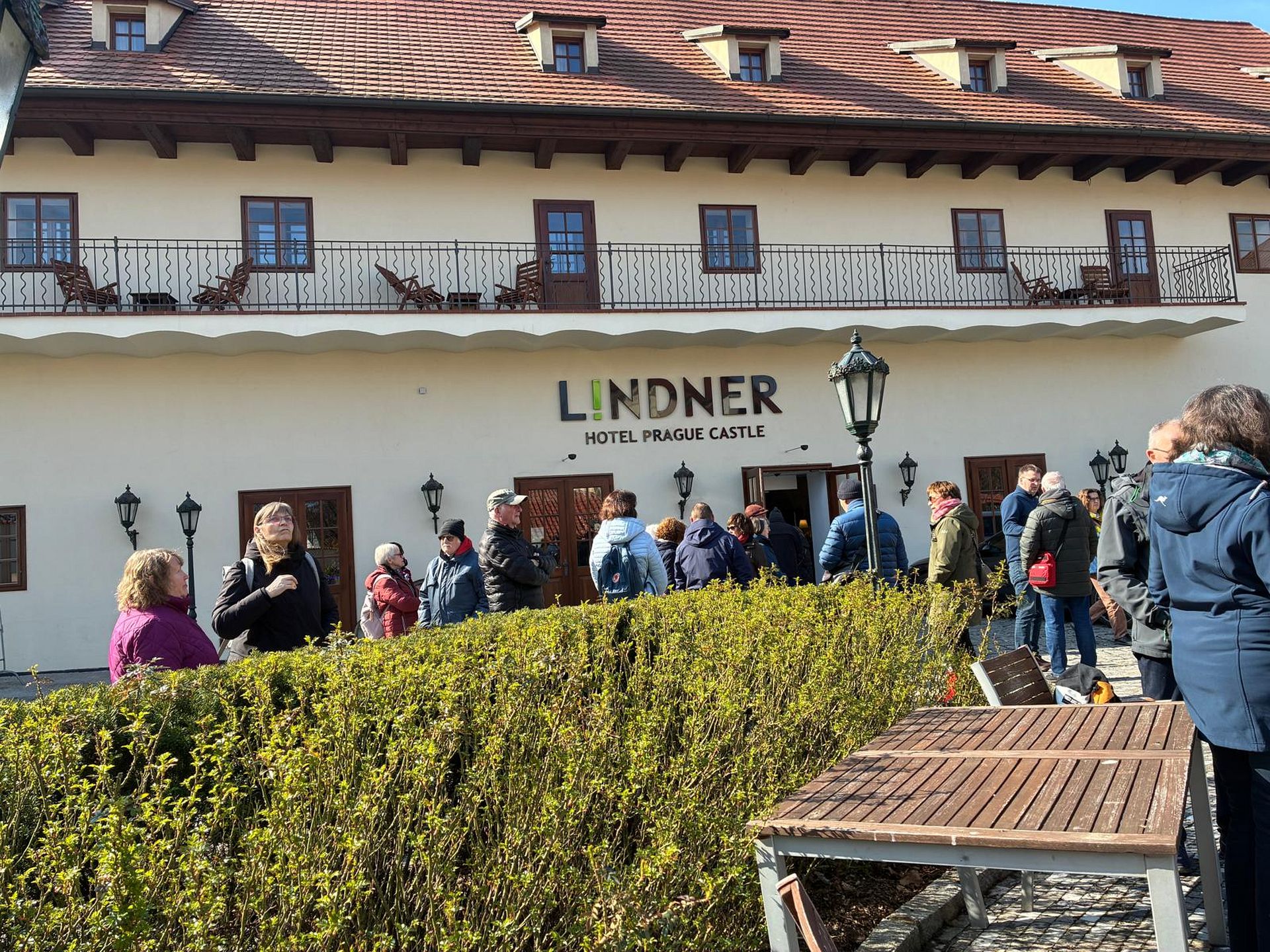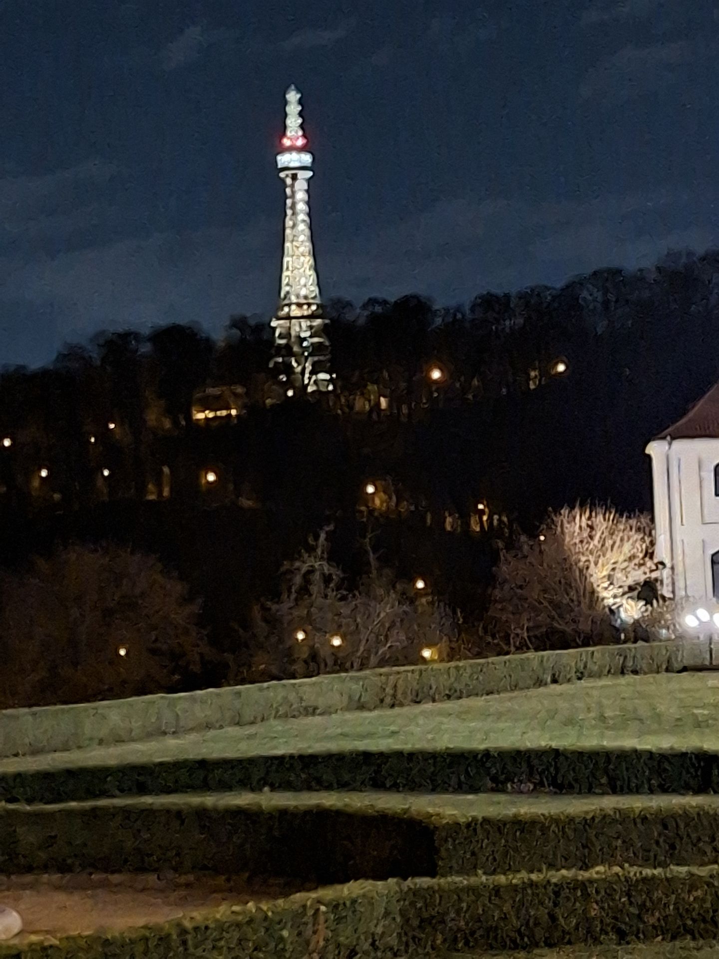 Prag. Die Autobahn war frei und Busfahrer Markus Liebig fuhr sicher zum Hotel „Lindner Prague Castle“. Es befindet sich in einem historischen Gebäude neben dem Kloster Strahov und nahe der Prager Burg. Das Ehepaar Knoke aus Hämelschenburg erkundete noch vor dem Abendessen in der Nähe den angeleuchteten Aussichtsturm, den Petrin, Eine freie Kopie des Pariser Eiffelturms. 1891 erbaut und 58,70 Meter hoch. Zu seiner Spitze in gleicher Meereshöhe wie die des echten Eiffelturms, führen 299 Stufen. Erstaunlich!