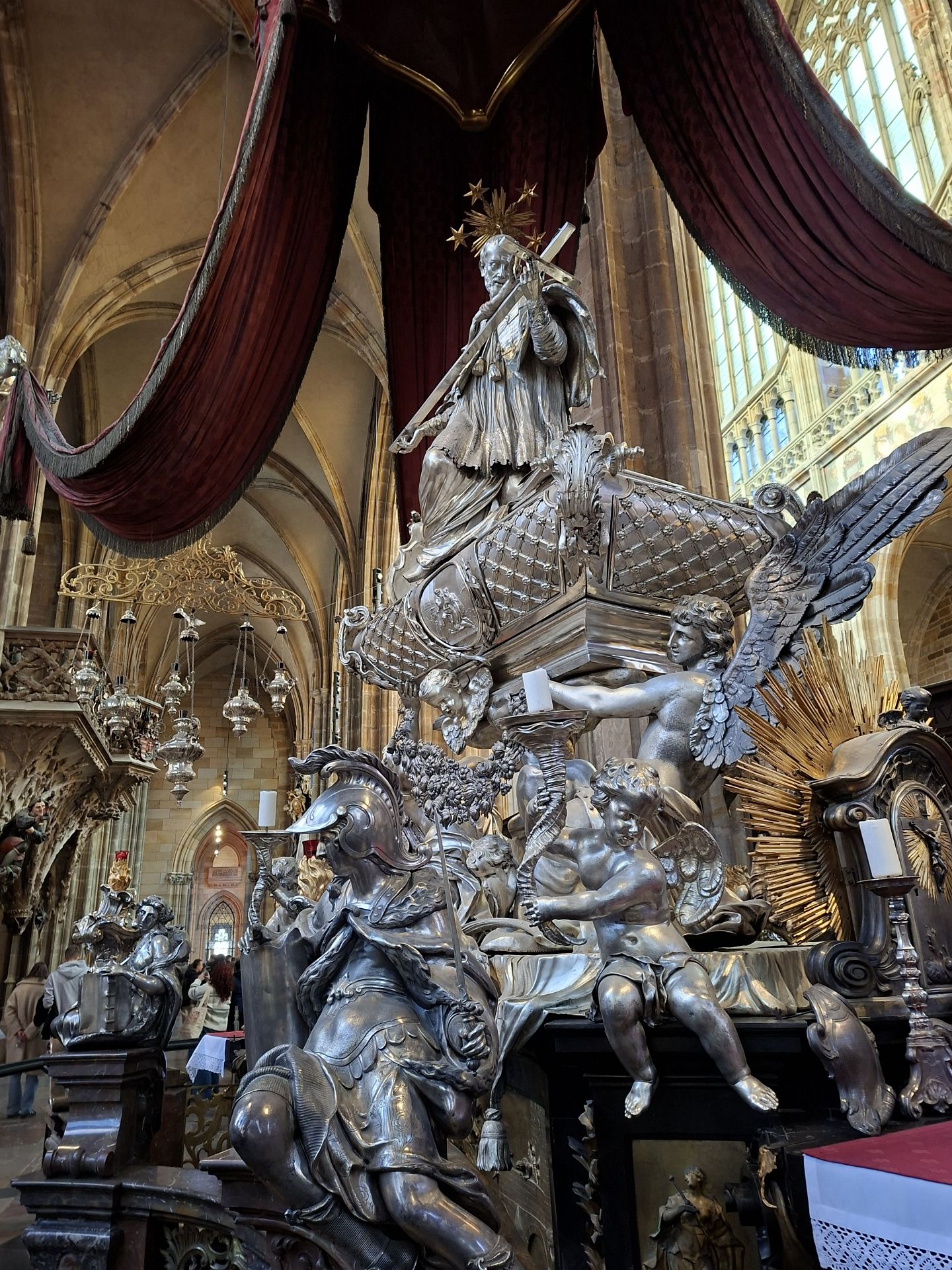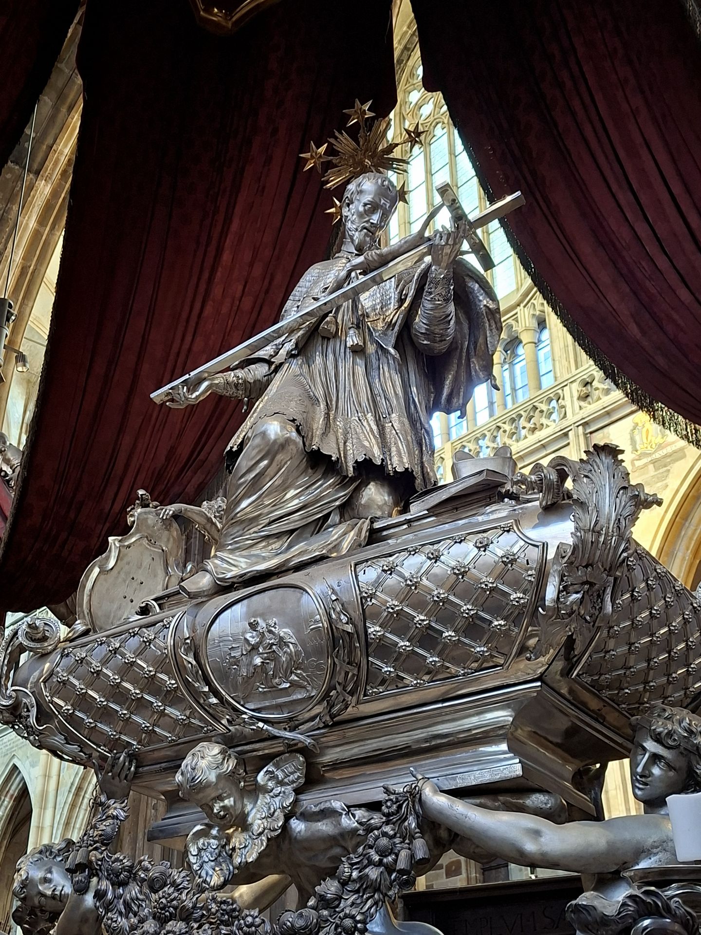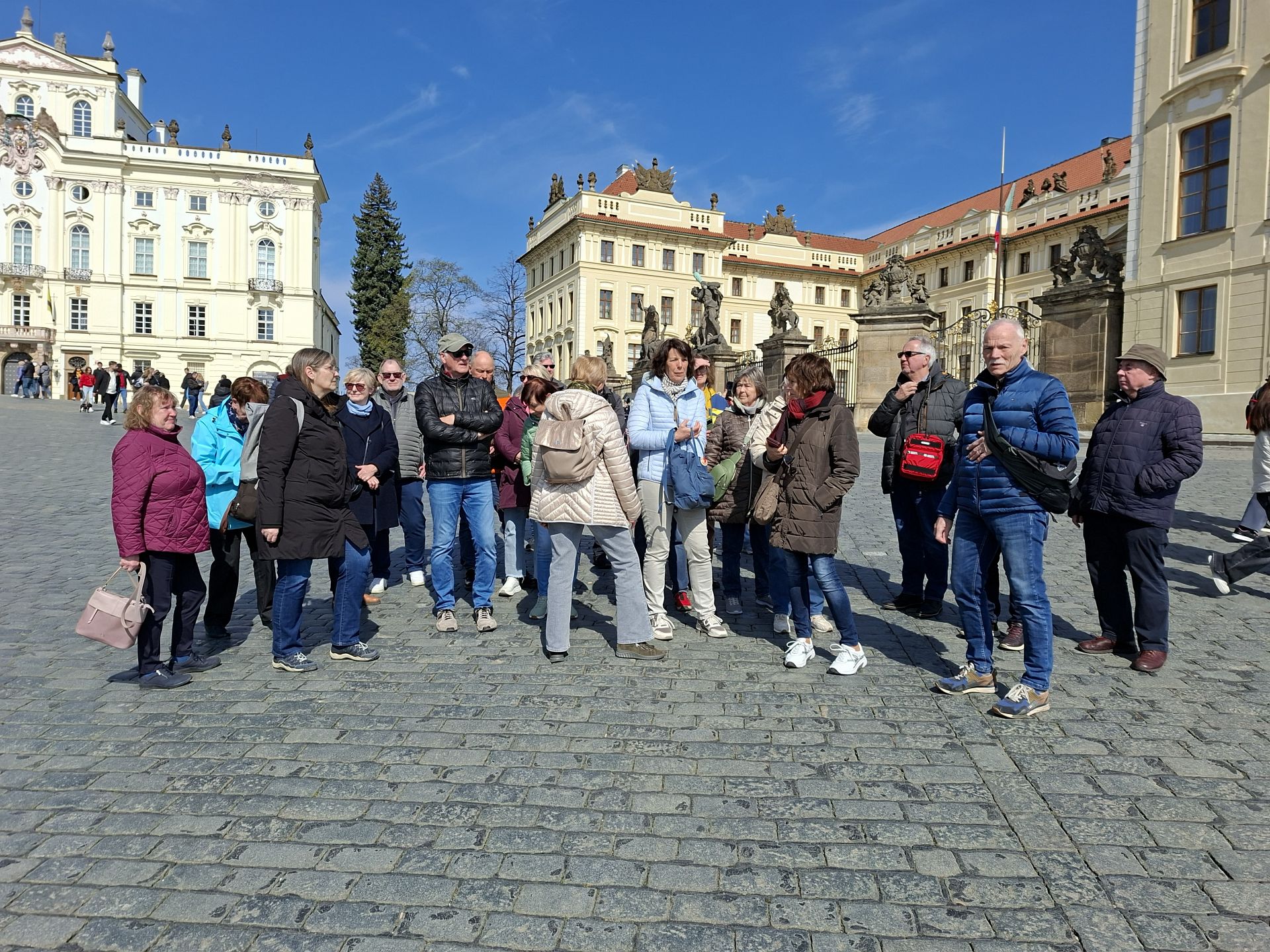 Prag ist eine Perle der Architektur und bietet eine Vielfalt von Sehenswürdigkeiten, die sich zu Fuß gut erkunden lassen, und wem die Füße vom Laufen auf dem Kopfsteinpflaster doch einmal schmerzten, nahm die Straßenbahnen 22 oder 23 zurück zum Hotel. Mit den örtlichen Gästeführerinnen gingen die Reisenden aus Weserberg- und Schaumburgerland durchs ehemalige jüdische Viertel zur bekannten Karlsbrücke und rechtzeitig zur vollen Stunde zum Altstädter Rathaus mit der berühmten Astronomischen Uhr. Bei einem Rundgang um die weitläufige Prager Burg auf dem Berg Hradschin tauchten sie in die jahrhundertalte Geschichte ein. Der gotische St. Veithsdom gehört zum größten Kirchenbau Tschechiens. In einer Seitenkapelle im Chorraum kommt man nicht an ihm vorbei – dem Grabmal des Heiligen Johannes Nepomuk. Zahlreiche Statuen des Heiligen stehen zumeist auf Brücken. Viele Kirchen stehen unter seinem Patronat.