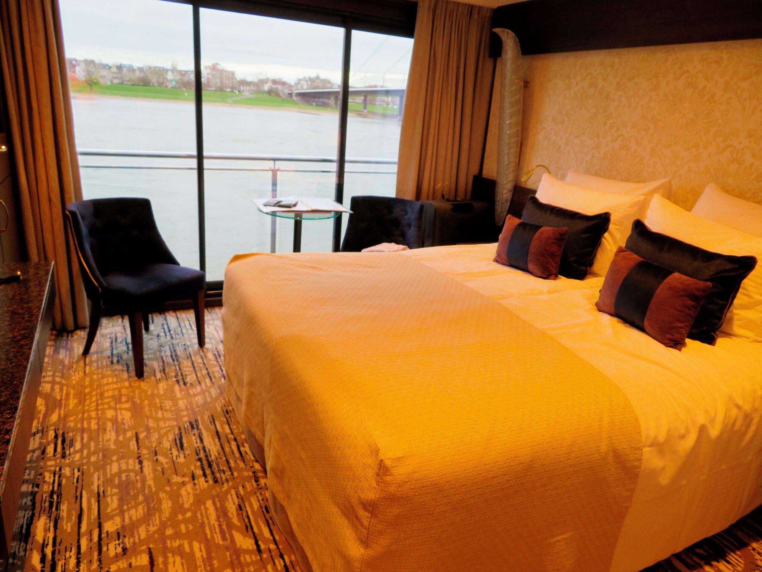 55 Meter hoch! Das Riesenrad auf dem Weihnachtsmarkt in Düsseldorf war selbst an Bord von MS VIVA MOMENTS nicht zu übersehen. Ehrlich gesagt ist der Düsseldorfer Budenzauber aber auch nur ein paar Minuten Fußweg vom Rheinufer entfernt, und so begann diese Advents-Flusskreuzfahrt nach dem Check-In auf dem Schiff mit einem Highlight. Es sollten weitere folgen.