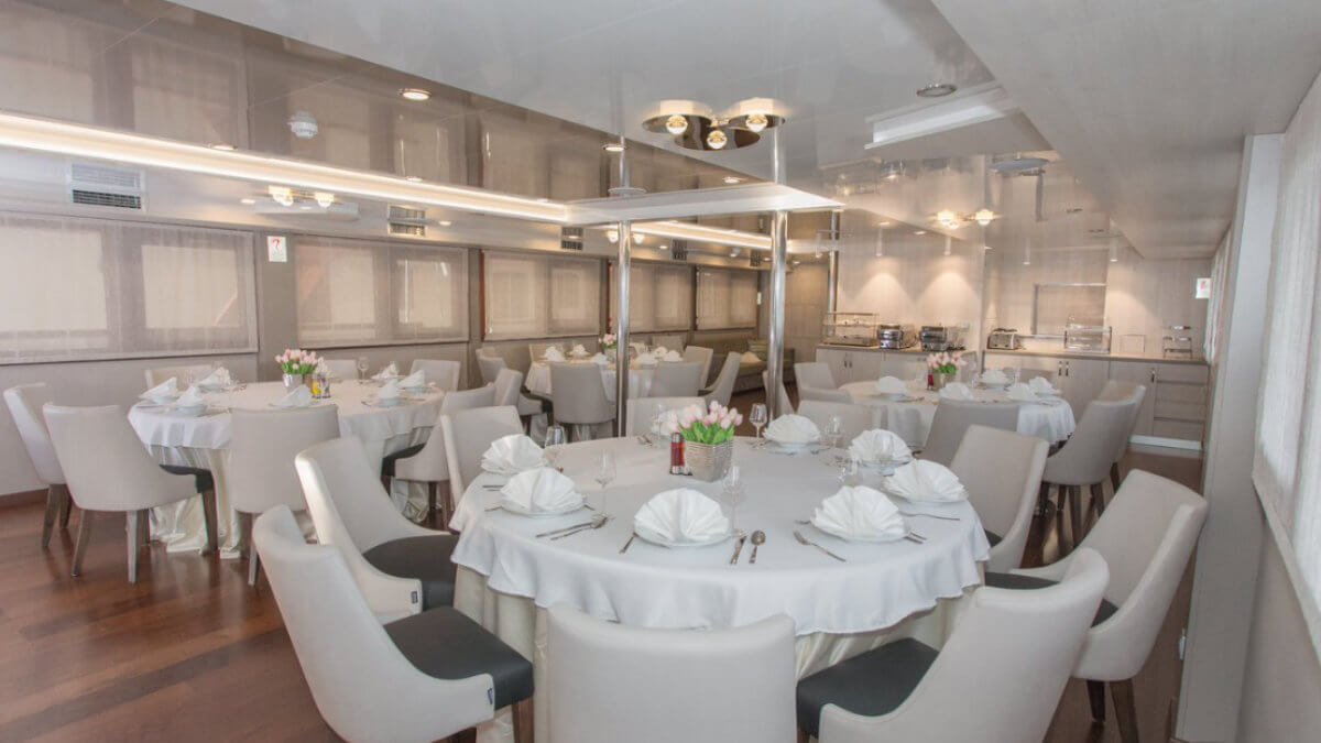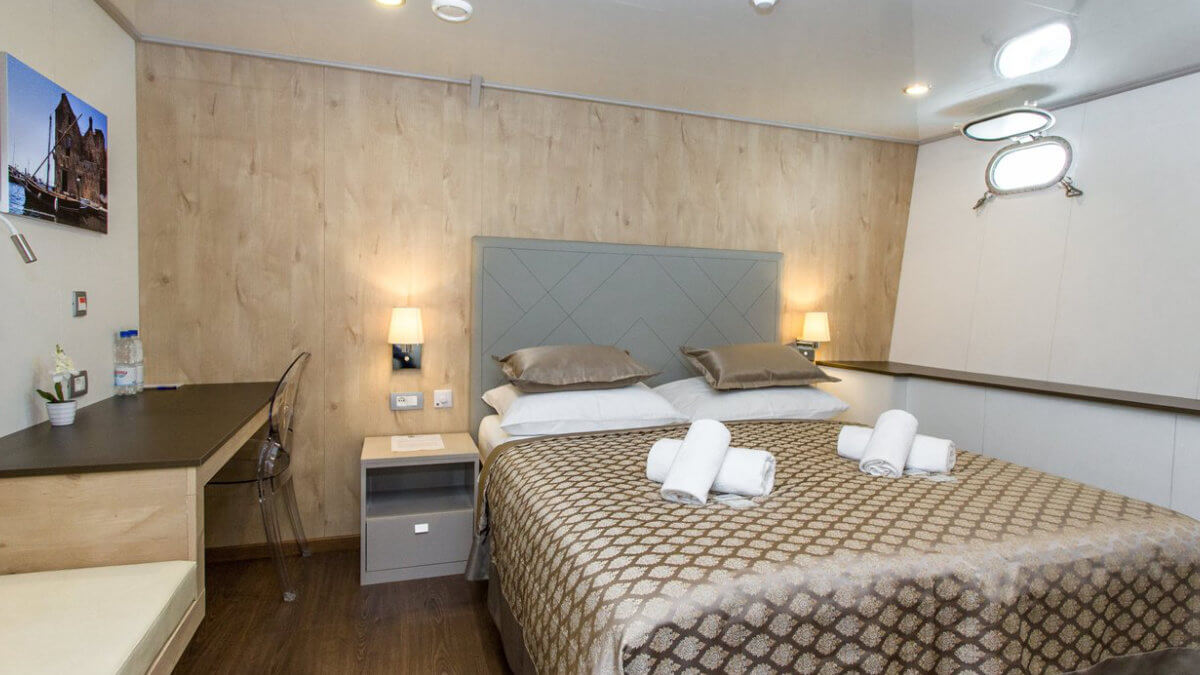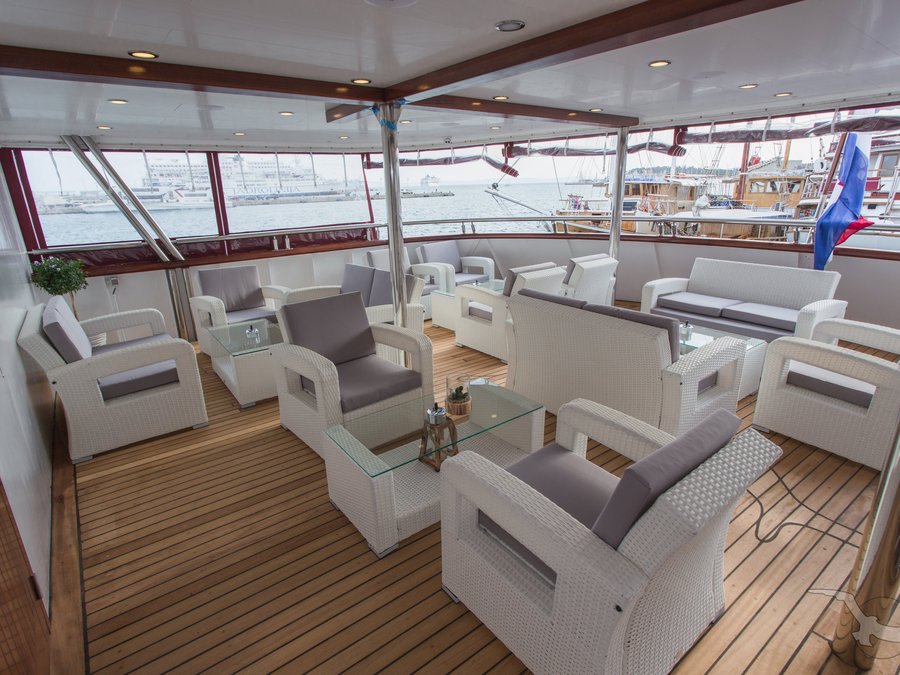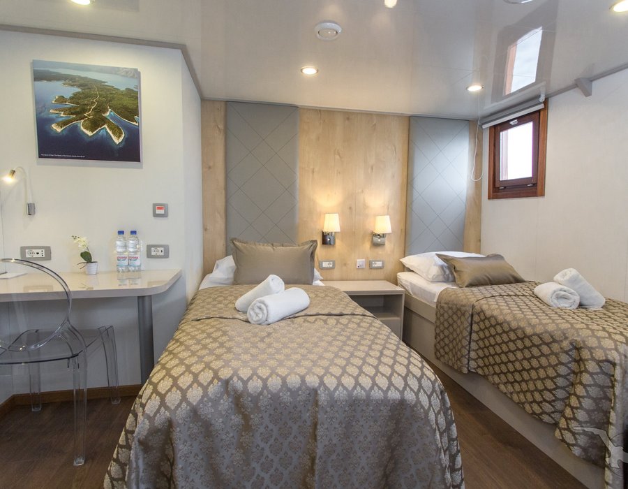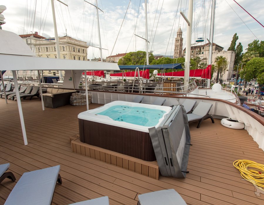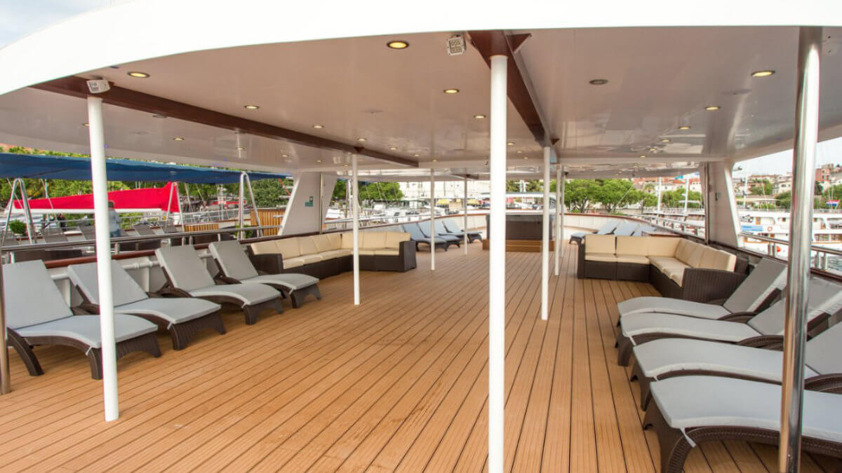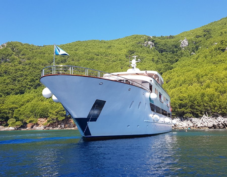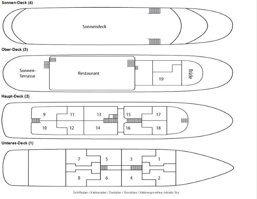 Die Adriatic Sky (Baujahr 2020) bietet 39 Gästen in 19 Kabinen modernes Ambiente auf vier Decks mit deutschsprachiger Betreuung.