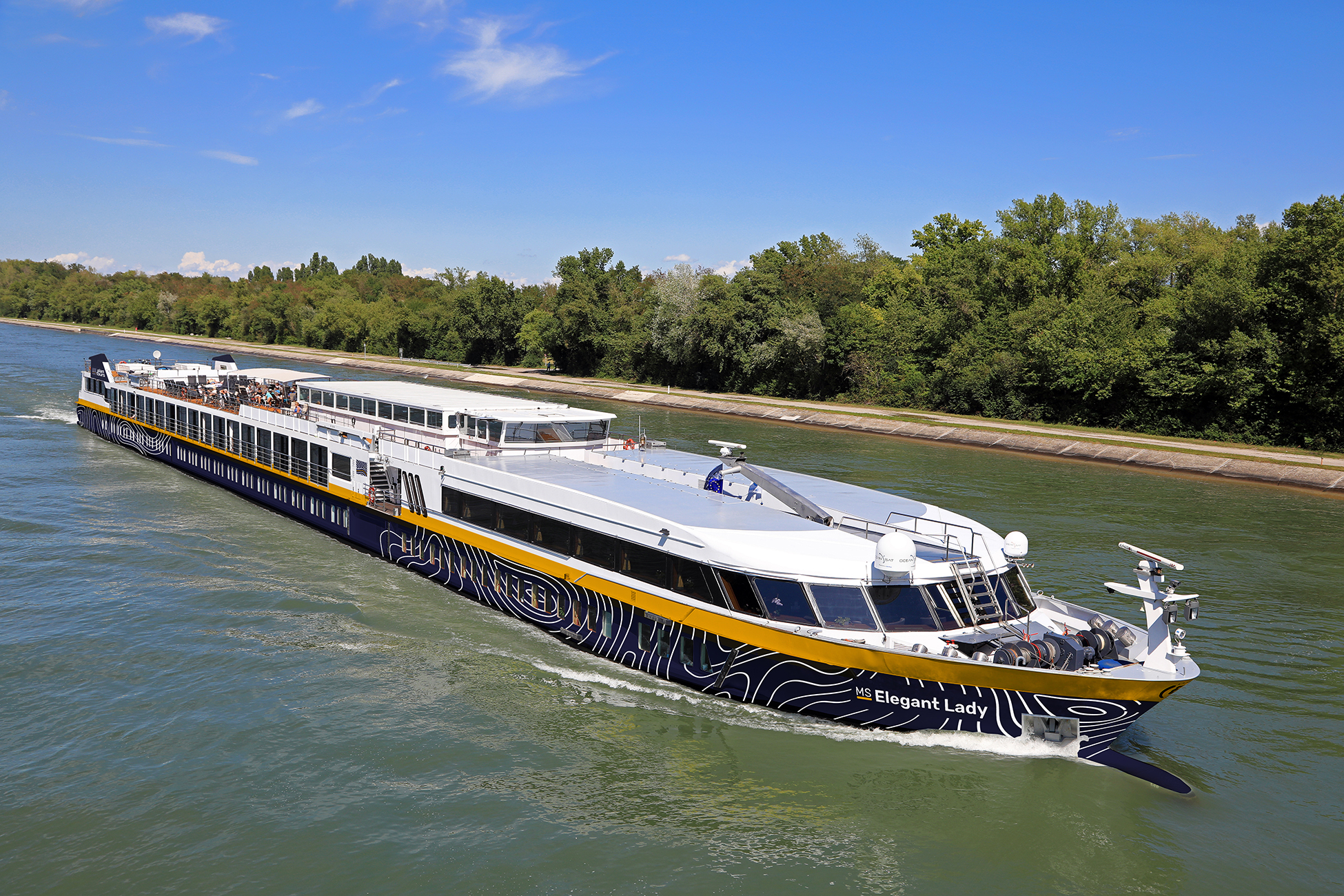 Die MS Elegant Lady (modernisiert 2024/25) bietet 126 Gästen lichtdurchflutete Kabinen, elegante Restaurants und Lounges sowie ein großzügiges Sonnendeck.