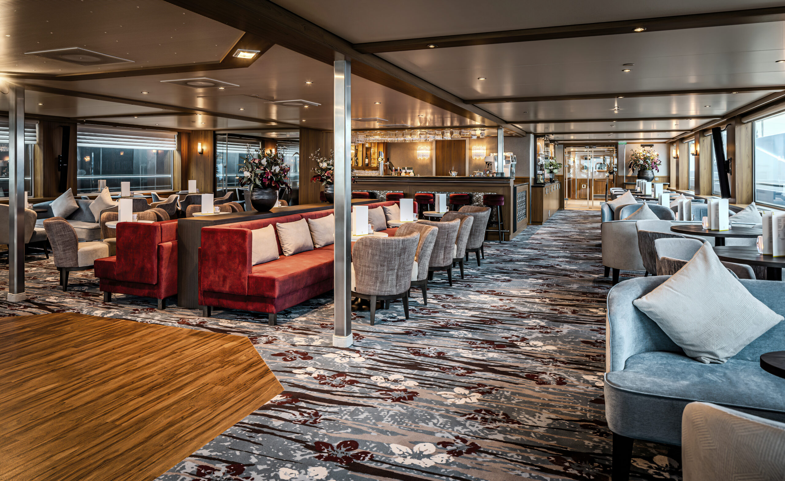 Die MS Adora (Baujahr 2019) bietet 190 Gästen stilvollen First-Class-Komfort mit Panorama-Restaurant, Fitnessraum, Bibliothek und großzügigem Sonnendeck mit Whirlpool.
