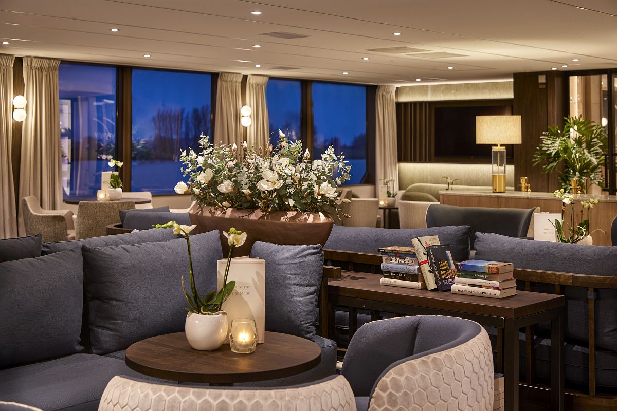 Die MS Adora (Baujahr 2019) bietet 190 Gästen stilvollen First-Class-Komfort mit Panorama-Restaurant, Fitnessraum, Bibliothek und großzügigem Sonnendeck mit Whirlpool.